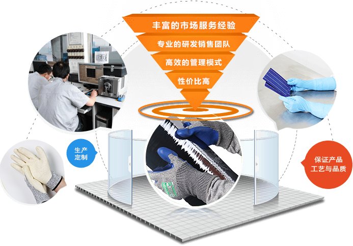 手套芯采用凱夫拉材質,經(jīng)權威機構檢測屬于5級防割標準,針織采用無縫針織,針織密度高,防止硅粉及金屬碎屑進入手背,手掌涂層采用壓紋設計,具有良好的減震功能,手套制作完成以后經(jīng)過6次清洗工藝處理,經(jīng)權威機構檢測表金屬雜質低于45PPBW.