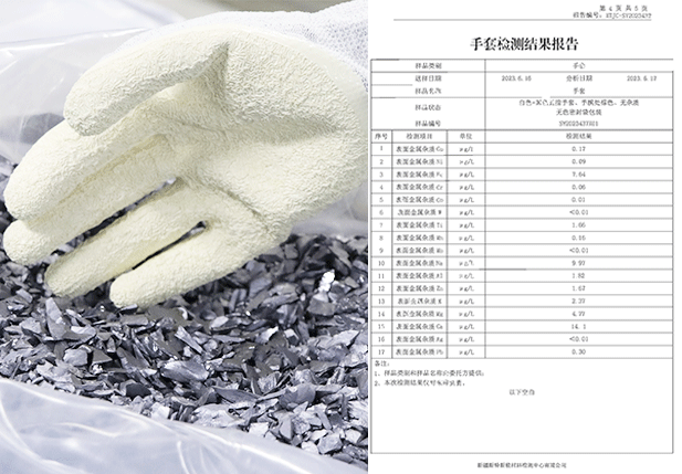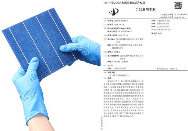 手套經(jīng)過特殊工藝處理,通過驗證將手套放置氮氣柜當中80H,手套接觸產品無任何氧化情況,經(jīng)權威機構檢測氯元素及硫元素完全符合接觸電池片標準,且不會在電池片上面留下任何指印。